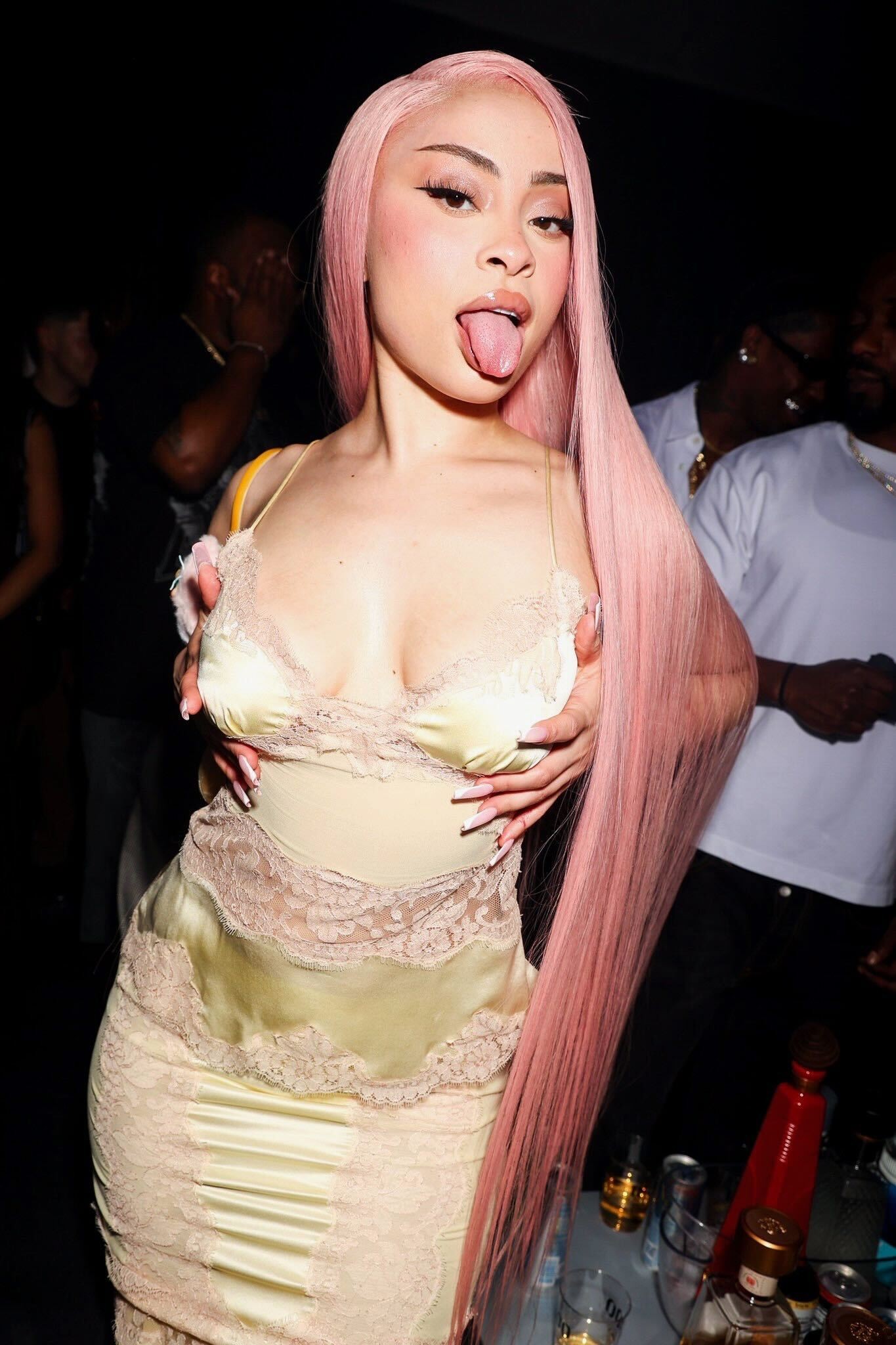 Ice Spice’s NYLON 2025 Miami party look was a full flashbulb moment — the kind that feels equal parts playful, provocative, and perfectly on-theme for Miami at night. The silhouette leans into lingerie dressing, with a satin-like sheen that catches light instantly and makes the whole outfit read “liquid” in motion. It’s sexy without trying too hard, because the details do the talking.