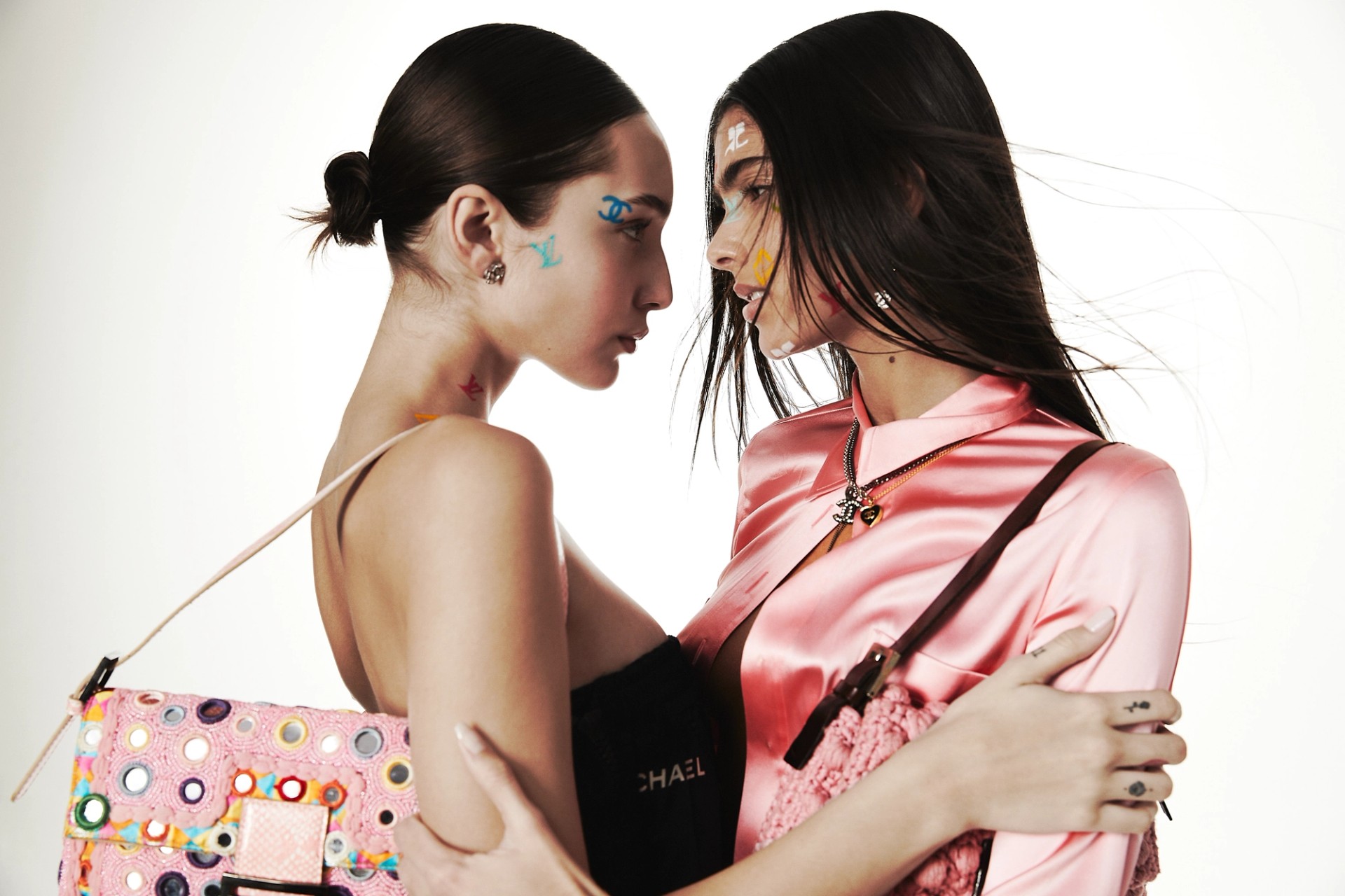 Logomania turns the volume up on house signatures and tongue-in-cheek rivalry. In collaboration with James Bee, Into Archive stages a playful face-off where Brittany Noon and Natalia Franco tussle over the latest luxury vintage trophy—badges, monograms, and heritage hardware front and center. The styling leans shiny and graphic: quilted textures, embossed leather, nylon shine, bouclé knits, and silk details that make brand language read like pop art. It’s a wry love letter to collecting—why we chase the stamp, how it frames the silhouette, and what it says about power and play. Makeup by Kevin Chean sharpens the contrasts; the result is crisp, collectible, and unmistakably Into.