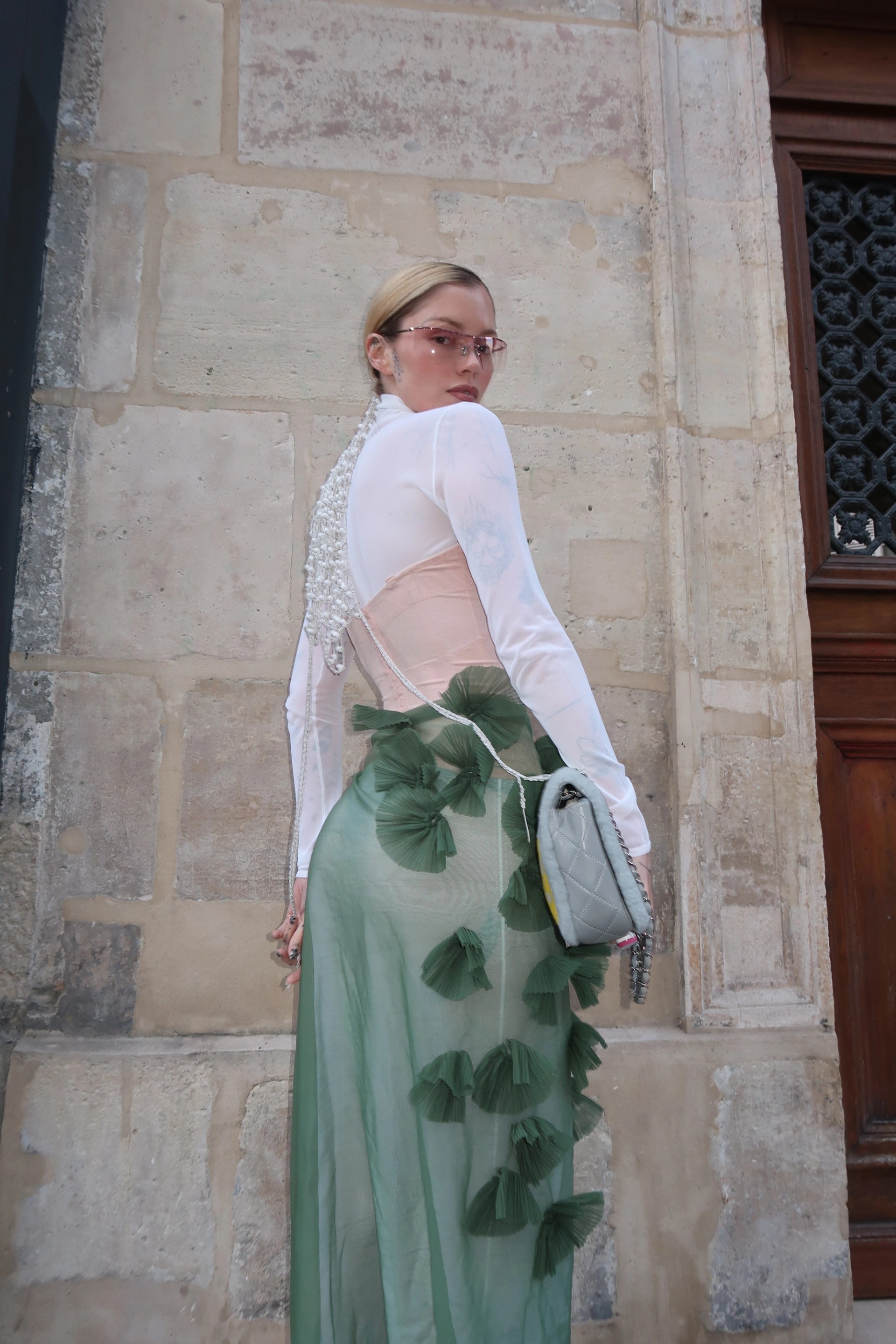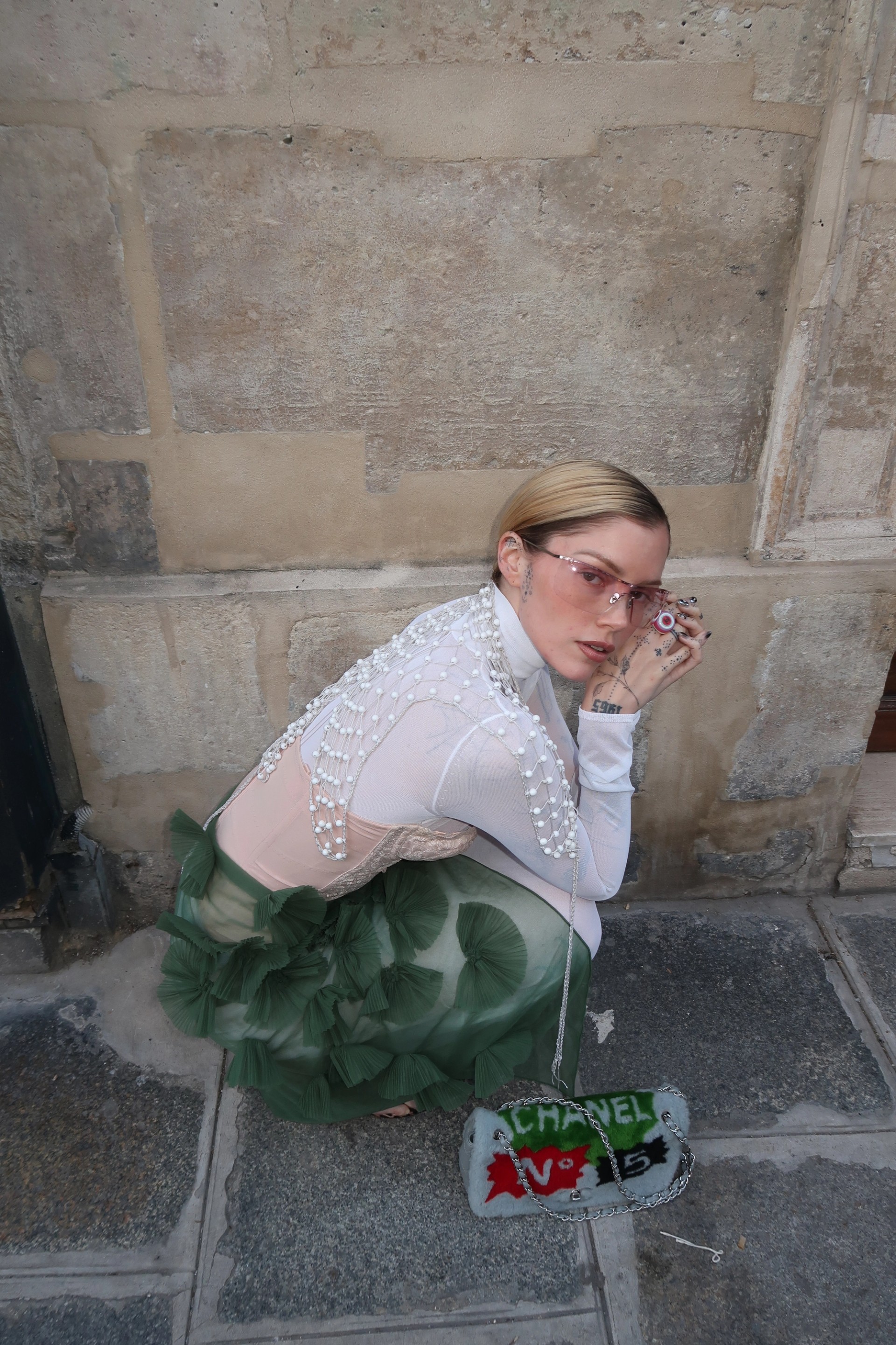 For Spring/Summer 2024, Into Archive teams with Chloé Filliettaz to sketch a Paris day in vintage: light, irreverent, and effortlessly polished. The wardrobe moves between John Galliano–era Dior pieces, Chanel shearling flap accents, and Comme des Garçons fabrics that flirt with proportion and texture. Hints of green chiffon, pink silk, and white cotton keep the palette fresh, while tactile touches—fur, rib, pleat—bring the looks off the page and into the street. It’s a study in ease: collectible staples styled with a wink, designed to travel from café mornings to late dinners without losing their charm. The result is a modern, feminine uniform that’s unmistakably Into.