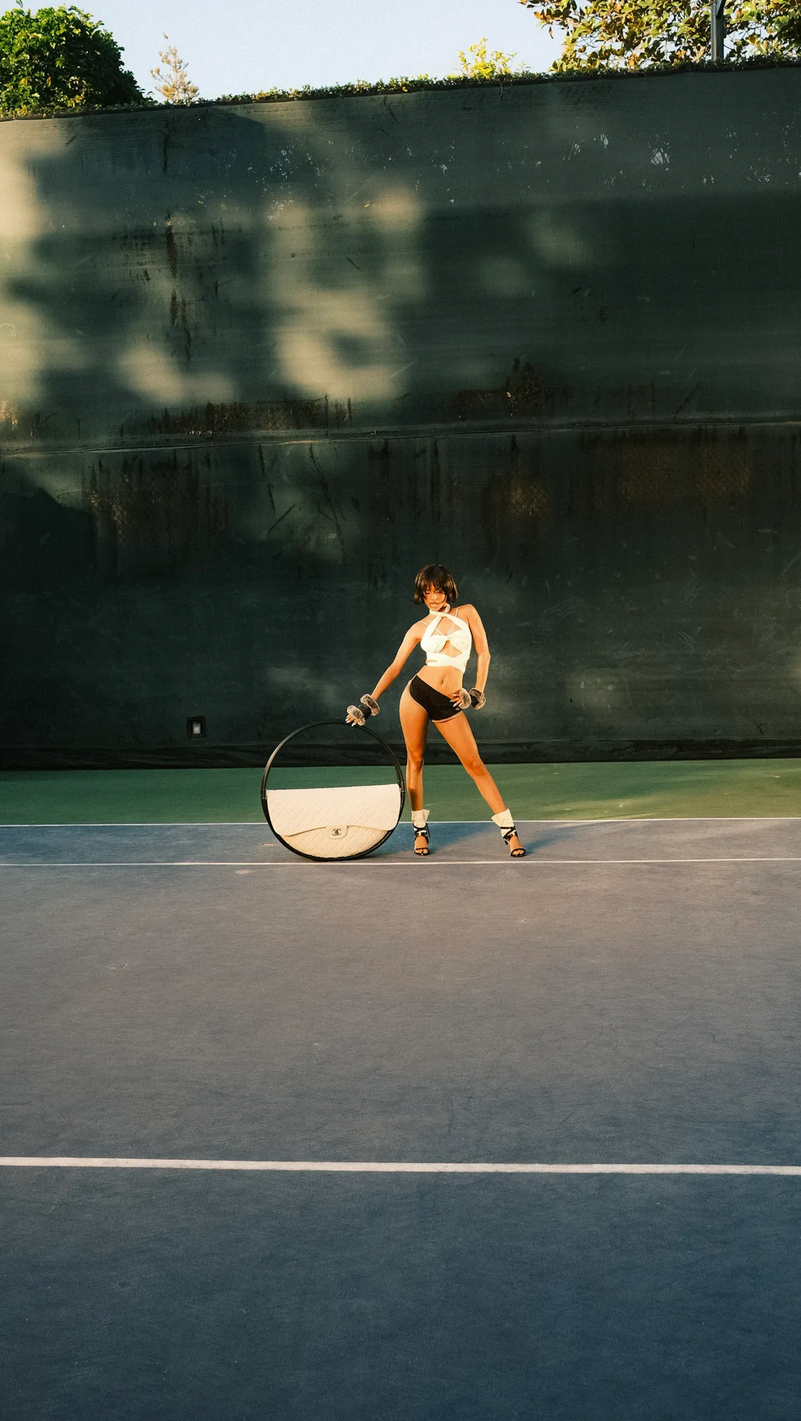The heels are from Spring/Summer 2006 and the shorts are from Spring/Summer 2002. Few accessories have leapt from runway to cultural memory as fast as Chanel’s Hula-Hoop bag. Debuting on the Spring/Summer 2013 runway, it was Karl Lagerfeld at his most audacious: the classic quilted flap reimagined inside two circular frames, scaled for the beach and built to photograph from across an arena. It was a wink at practicality—“a beach bag, you can put the towel inside,” he joked at the time—but the point was bigger than function. The Hula-Hoop turned Chanel’s codes into architecture: diamond quilting stretched like canvas over a halo, the CC clasp centered like a medallion, the silhouette instantly legible even in a crowd of flashbulbs.