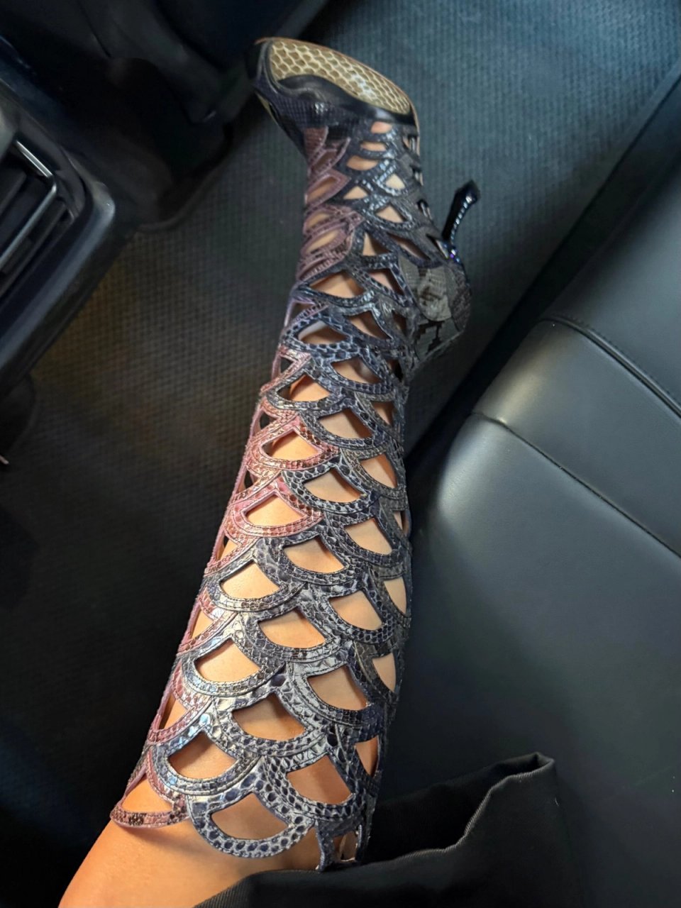 The craftsmanship required to execute this in genuine python is immense. Python skin is naturally supple but incredibly durable; however, the lattice-work makes the material delicate. When you find a pair in 2026 that hasn't stretched or cracked at the joints, you are looking at a piece of fashion history that has been cared for like a museum artifact.