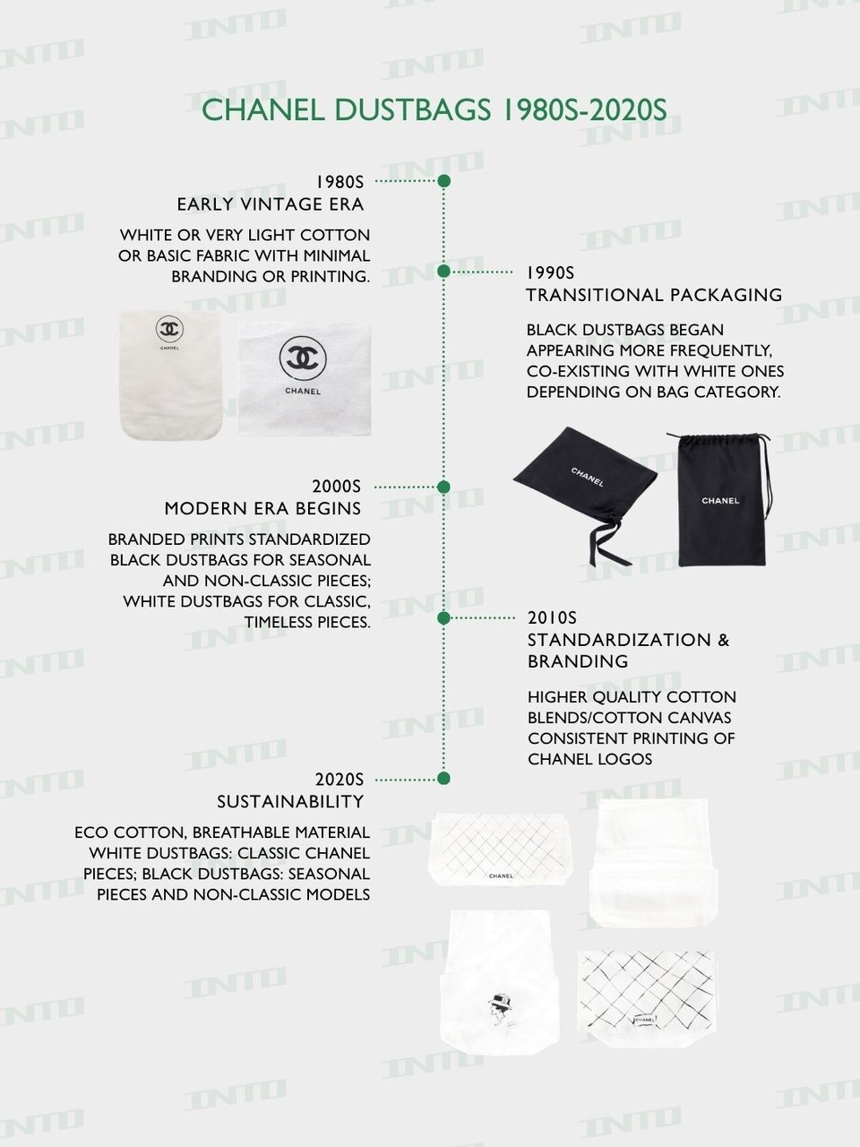 The 2010s brought a very specific hierarchy to the Chanel unboxing experience. This decade is defined by the "Standardization & Branding" phase. Collectors began to notice a clear divide: the White Dustbag vs. the Black Dustbag.
