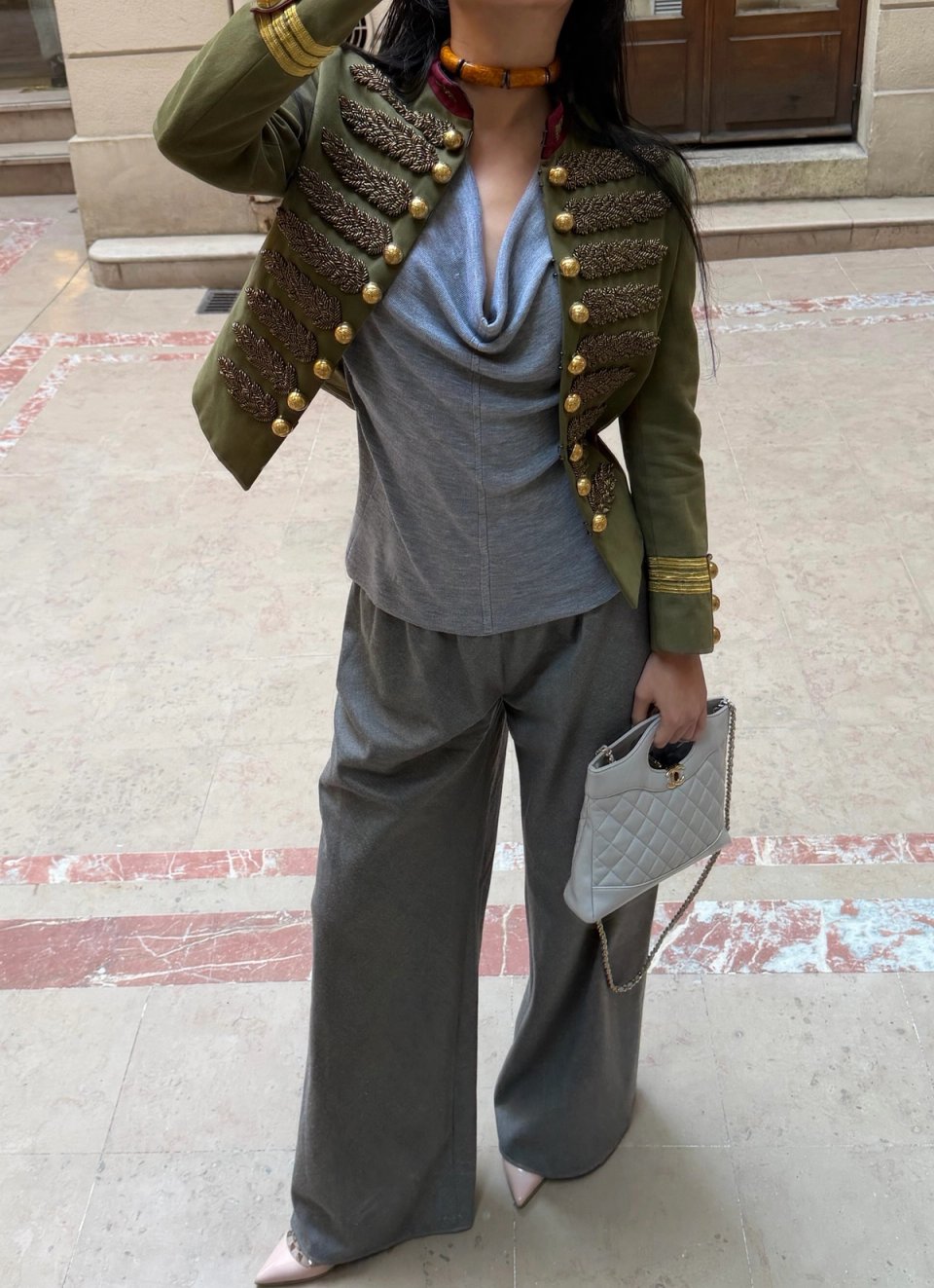 If you’re wondering how to actually wear a $10,000 uniform today, the beauty of this piece is its sheer versatility. You could take the 2015 Runway Route and pair it with flared denim and a skinny silk scarf for that classic "boho-rocker" look that defined an era. However, for a 2026 update, many stylists are leaning into sharp contrast. Imagine the heavy, ornate military wool thrown over a sheer slip dress or paired with wide-leg grey trousers and pointed-toe heels. It’s all about balancing the "soldier" with the "socialite" in a way that feels effortless.